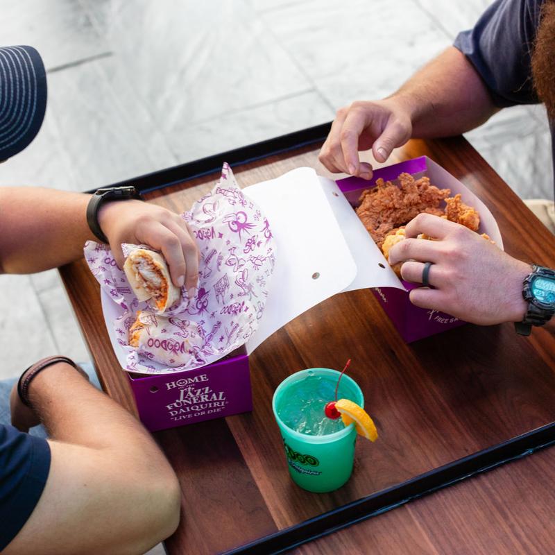 Whether you’re looking for a quick lunch downtown, exploring the French Quarter or have a late night craving on Bourbon Street, Voodoo Chicken & Daiquiris has something for everyone. Come experience it for yourself.